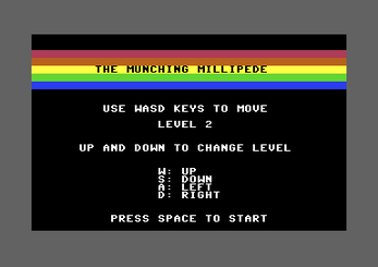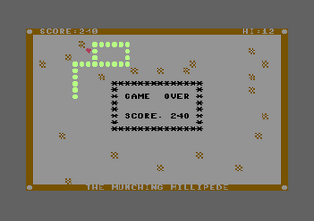 The Munching Millipede game is written in Commodore BASIC 2.0 for the Commodore 64.